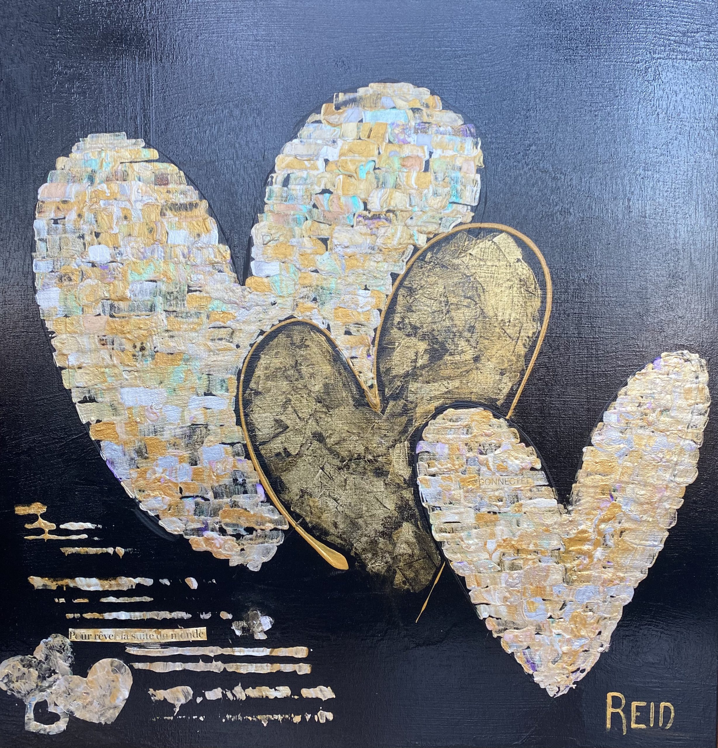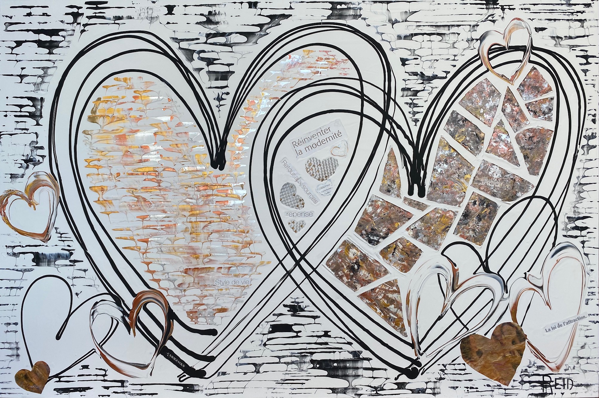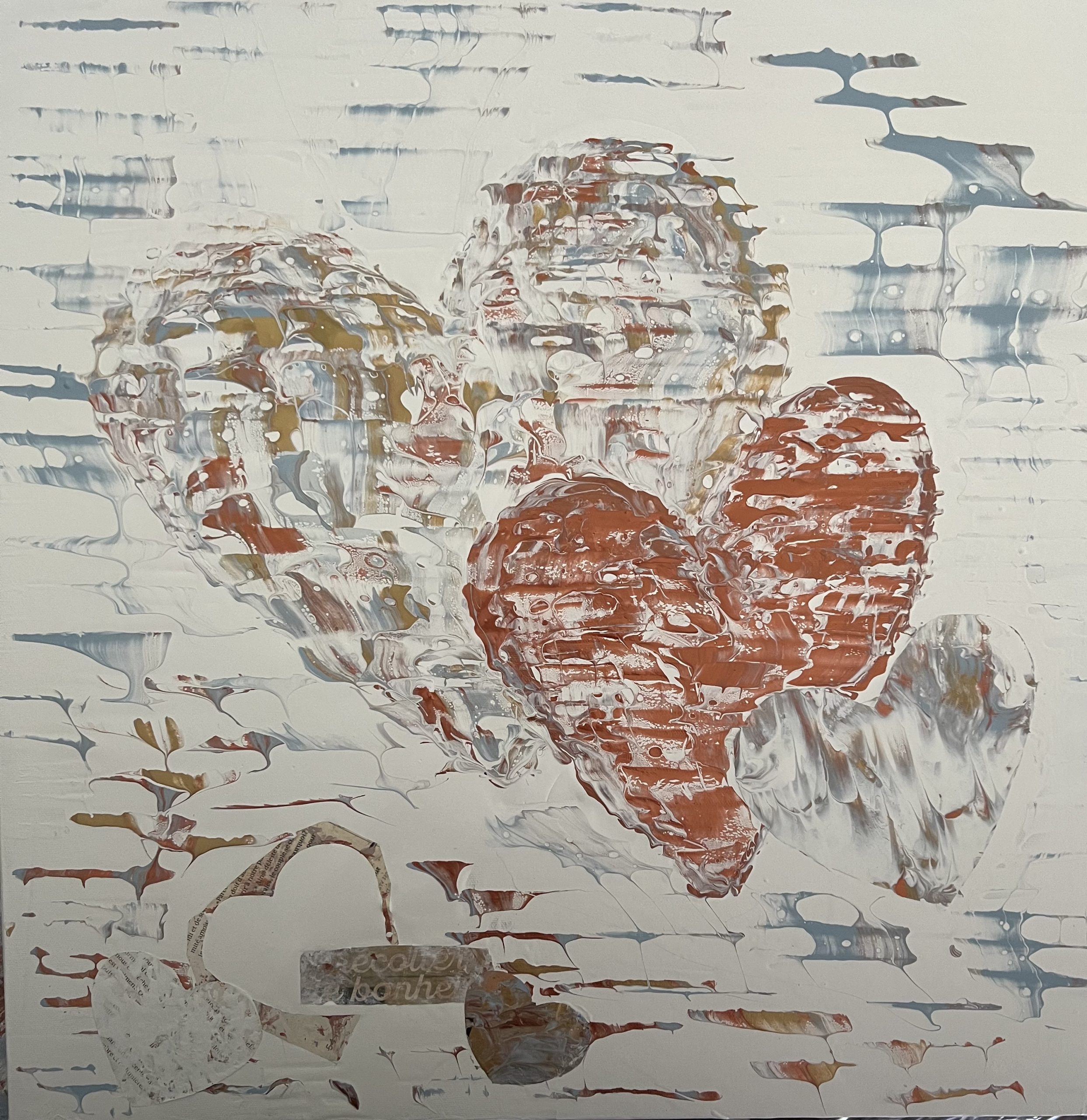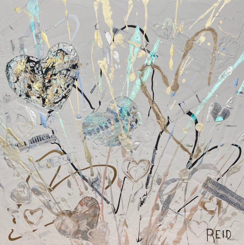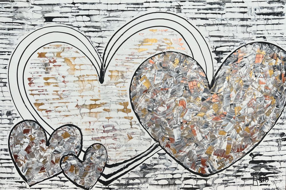 Collection Coeurs couleurs métalliques et monochromes L’essentiel c’est d’aimer L’essentiel n’est-il pas de simplement s’aimer? 40x60 - 3300$ La présence Enracinement, Connexion avec soi, Connexion aux autres - 15x30 - 1500$ Aimer l’amour Le plus grand bonheur c’est d’aimer. 24x24 - 1500$ Semer l’amour Semer l’amour. 16x16 - 500$ À la découverte 12x12 - 325$ Aimer malgré les différences 12x12 - 325$ Connexion 12 x12 - 325$ Présence 12x12 - 325$ Douceur et discrétion Dans la douceur et la discrétion. Savoir faire. Savoir être. Mettre de la lumière autour de soi. 36x36 - 2300$ A découvrir Dans la douceur et la discrétion. Savoir faire. Savoir être. Mettre de la lumière autour de soi. 36x36 - 2300$ Ce que ton cœur porte 30x40 - 2300$ Il suffit d’être 40x60 - 3300$ Aimer c’est être… Être dans ses imperfections, être dans son intégrité, être avec les autres, être en amour avec la vie. 24x48 - 2300$ Aimons nous toujours plus fort Avec nos ressemblances, avec nos différences, toujours plus fort. 18x36 - 1350$ Être ensemble… Tout devient magique lorsqu’on est ensemble. 30x15- 1000$ Nourrir le rêve Tout devient magique lorsqu’on est ensemble. 30x15 - 1000$ Précieux temps Cultiver l’intimité. Récolter le bonheur. 24x24 - 1500$ Être dans son cœur C’est dans le cœur qu’on trouve la paix. 30x15 - 1300$ Dévoiler ses couleurs Pour créer de vrais liens. 40x30 - 2300$ Dites le avec amour A tous les jours. 30x40 - 2300$ Explosion intérieure Seule l’explosion intérieure permet de briller. -Paulo Coelho. 16x16 - 900$ Aimer de l’intérieur Aimer de l’intérieur. Aimer pour vrai ! 40x60 - 3300$ Femme 12x12 - 450$ Récolter le bonheur Doucement, avec amour et passion. 24x24 - 1500$ Imagination Pour devenir complice de la beauté. Pour réparer et devenir créateur. 24x24 - 1500$ Créer avec amour Ce qui est fait avec amour transcende la temps et devient art . 20x20 - 1300$- Disponible à Un Fauteuil pour deux Voyage au cœur de soi L’âme est pur amour. Elle ne juge pas, ne se plaint pas, elle aime tout simplement. 30x40 - 2300$ La loi de l’attraction La loi de l’attraction Futures générations Pleins les yeux. 36x24 - 1980$ Toucher le ciel Aimer jusqu’à vouloir toucher le ciel!! 36x48 - 2700$ Rêver la suite du monde... Restez connecté au monde et surtout à votre cœur. 24x24 - 1500$ L'intemporelle L'intemporelle Avec coeur ... Créer avec le coeur. L’esprit tranquille. Avec simplicité et audace. Classique et raffinée. C’est une question de valeur. 24x24 - 1500$ Escapade de rêve Se laisser transporter. Passion et bien être. Atteindre le summum du bonheur. 24x24 - 1500$ Vision inspirée À travers tous les récits, toutes les histoires inscrites, je continue de croire qu’il est possible de trouver le chemin ensemble pour inspirer, pour rayonner et surtout pour aimer. 24x24 - 1500$ Ces femmes... Par leurs regards, leurs mots, leurs gestes. Elles bâtissent, elles tracent la route, elles embellissent le monde! 30x30 - 1980$ Modernité réinventée Je retourne à la source et je rêve éveillé d’un espace libre et paisible. Un espace où l’on peut créer, où l’on peut réinventer la modernité 40x60 - 3300$ - Disponible à Un Fauteuil pour Deux Prendre soin 24x20 - 1250$ Nouvelle vision Défier le temps et briller de mille feux. Avec Amour et passion. 36x48 - 2770$ Face a face Toute la vérité. En toute confiance. 48x24 - 2300$_ Disponible à Un Fauteuil pour Deux Nouvelle Ère Amis pour la vie. Famille aujourd’hui. Amour et paix. Le Monde en a besoin. 24x24 - 1500$ - Disponible a Un Fauteuil Pour Deux Raison du coeur Le cœur a ses raisons que la raison ignore. Il est temps de changer... et laisser les cœurs s’exprimer. 40x60 - 3300$ - Disponible a Un Fauteuil Pour Deux Privilège Mot de passe: coeur. Sur le chemin. Le bonheur d’offrir...24x36 - 1900$ Haute en couleur Savoir regarder la vie différemment .. Laissez briller l’amour 30x15 - 1400$ Mythes et realités Peu importe car tout le monde rêve d’être amoureux… Et ça part de soi....36x48 - 2700$ - Disponible à Un Fauteuil pour Deux Lecon de maître (Vendue)