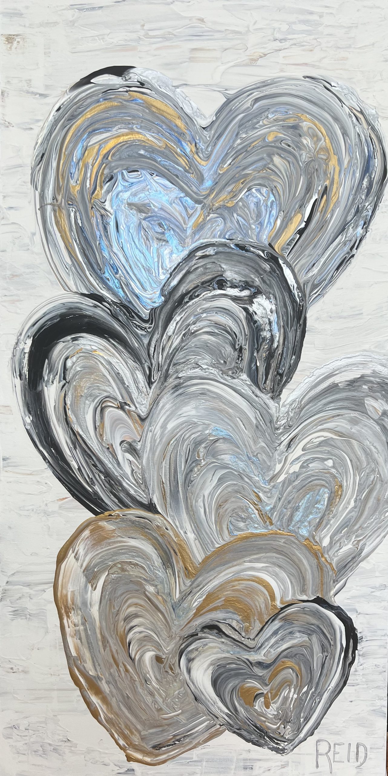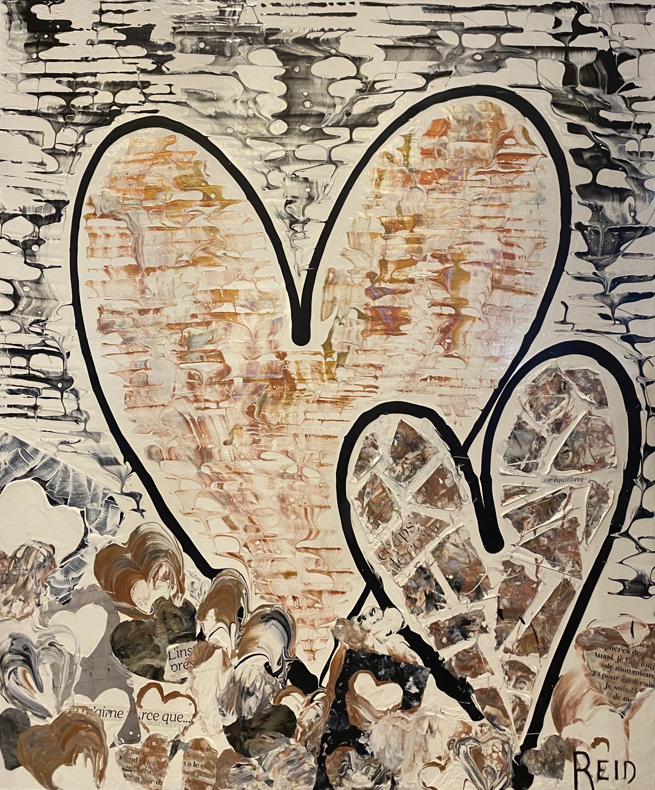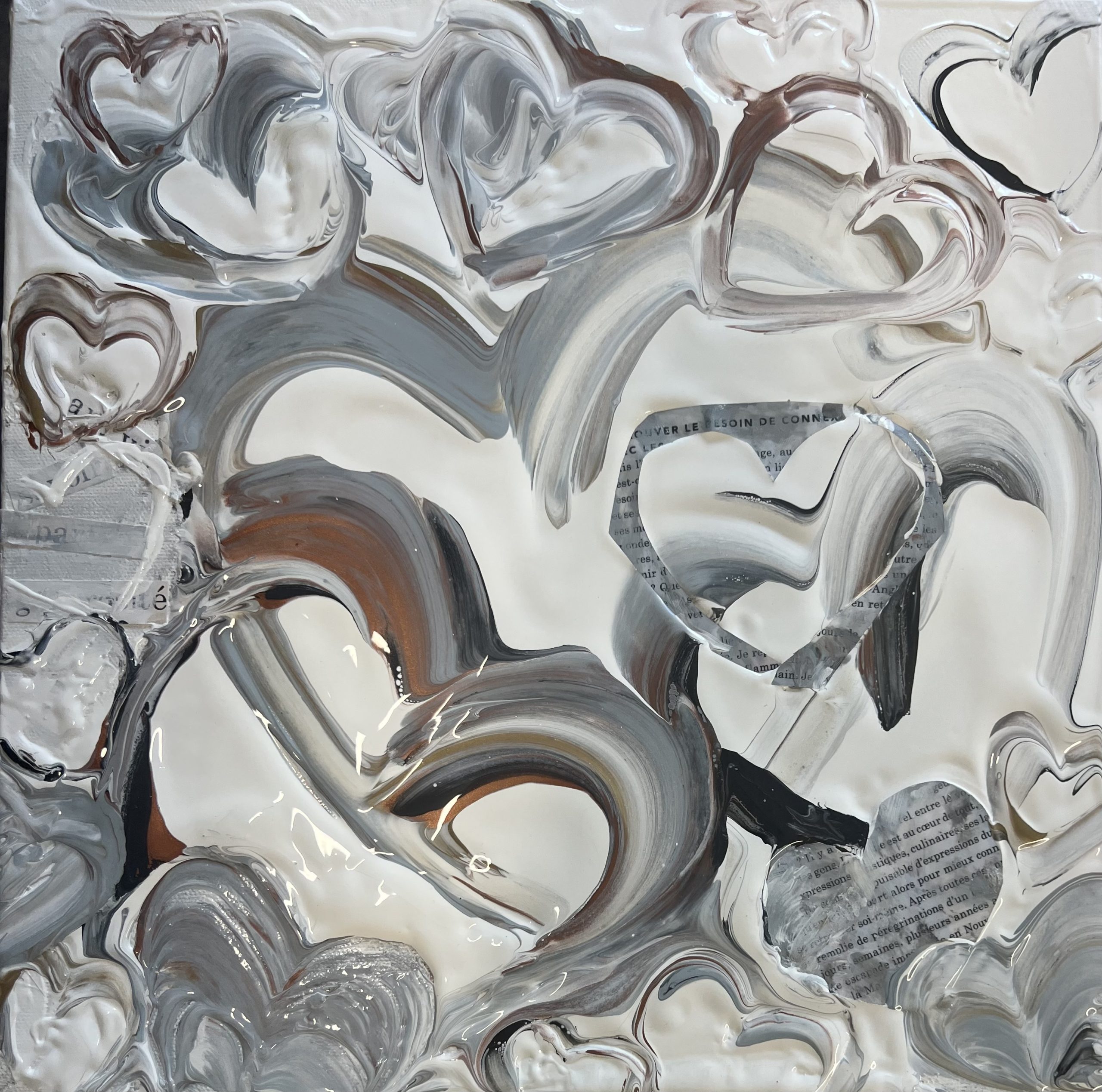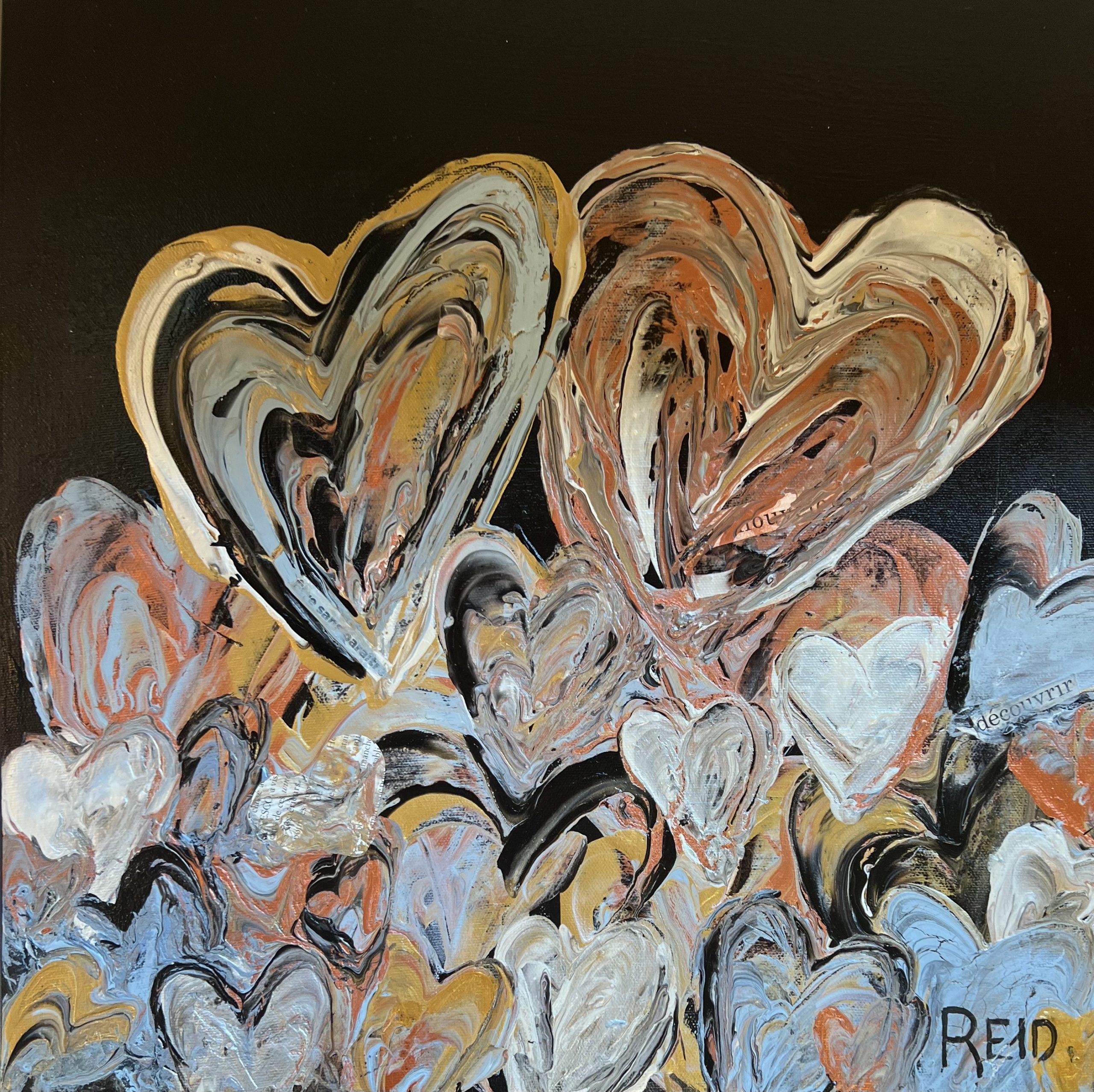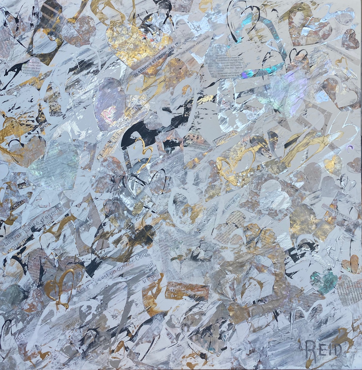 Collection Coeurs couleurs métalliques et monochromes L’essentiel c’est d’aimer L’essentiel n’est-il pas de simplement s’aimer? 40x60 - 3300$ La présence Enracinement, Connexion avec soi, Connexion aux autres - 15x30 - 1500$ Aimer l’amour Le plus grand bonheur c’est d’aimer. 24x24 - 1500$ Semer l’amour Semer l’amour. 16x16 - 500$ À la découverte 12x12 - 325$ Aimer malgré les différences 12x12 - 325$ Connexion 12 x12 - 325$ Présence 12x12 - 325$ Douceur et discrétion Dans la douceur et la discrétion. Savoir faire. Savoir être. Mettre de la lumière autour de soi. 36x36 - 2300$ A découvrir Dans la douceur et la discrétion. Savoir faire. Savoir être. Mettre de la lumière autour de soi. 36x36 - 2300$ Ce que ton cœur porte 30x40 - 2300$ Il suffit d’être 40x60 - 3300$ Aimer c’est être… Être dans ses imperfections, être dans son intégrité, être avec les autres, être en amour avec la vie. 24x48 - 2300$ Aimons nous toujours plus fort Avec nos ressemblances, avec nos différences, toujours plus fort. 18x36 - 1350$ Être ensemble… Tout devient magique lorsqu’on est ensemble. 30x15- 1000$ Nourrir le rêve Tout devient magique lorsqu’on est ensemble. 30x15 - 1000$ Précieux temps Cultiver l’intimité. Récolter le bonheur. 24x24 - 1500$ Être dans son cœur C’est dans le cœur qu’on trouve la paix. 30x15 - 1300$ Dévoiler ses couleurs Pour créer de vrais liens. 40x30 - 2300$ Dites le avec amour A tous les jours. 30x40 - 2300$ Explosion intérieure Seule l’explosion intérieure permet de briller. -Paulo Coelho. 16x16 - 900$ Aimer de l’intérieur Aimer de l’intérieur. Aimer pour vrai ! 40x60 - 3300$ Femme 12x12 - 450$ Récolter le bonheur Doucement, avec amour et passion. 24x24 - 1500$ Imagination Pour devenir complice de la beauté. Pour réparer et devenir créateur. 24x24 - 1500$ Créer avec amour Ce qui est fait avec amour transcende la temps et devient art . 20x20 - 1300$- Disponible à Un Fauteuil pour deux Voyage au cœur de soi L’âme est pur amour. Elle ne juge pas, ne se plaint pas, elle aime tout simplement. 30x40 - 2300$ La loi de l’attraction La loi de l’attraction Futures générations Pleins les yeux. 36x24 - 1980$ Toucher le ciel Aimer jusqu’à vouloir toucher le ciel!! 36x48 - 2700$ Rêver la suite du monde... Restez connecté au monde et surtout à votre cœur. 24x24 - 1500$ L'intemporelle L'intemporelle Avec coeur ... Créer avec le coeur. L’esprit tranquille. Avec simplicité et audace. Classique et raffinée. C’est une question de valeur. 24x24 - 1500$ Escapade de rêve Se laisser transporter. Passion et bien être. Atteindre le summum du bonheur. 24x24 - 1500$ Vision inspirée À travers tous les récits, toutes les histoires inscrites, je continue de croire qu’il est possible de trouver le chemin ensemble pour inspirer, pour rayonner et surtout pour aimer. 24x24 - 1500$ Ces femmes... Par leurs regards, leurs mots, leurs gestes. Elles bâtissent, elles tracent la route, elles embellissent le monde! 30x30 - 1980$ Modernité réinventée Je retourne à la source et je rêve éveillé d’un espace libre et paisible. Un espace où l’on peut créer, où l’on peut réinventer la modernité 40x60 - 3300$ - Disponible à Un Fauteuil pour Deux Prendre soin 24x20 - 1250$ Nouvelle vision Défier le temps et briller de mille feux. Avec Amour et passion. 36x48 - 2770$ Face a face Toute la vérité. En toute confiance. 48x24 - 2300$_ Disponible à Un Fauteuil pour Deux Nouvelle Ère Amis pour la vie. Famille aujourd’hui. Amour et paix. Le Monde en a besoin. 24x24 - 1500$ - Disponible a Un Fauteuil Pour Deux Raison du coeur Le cœur a ses raisons que la raison ignore. Il est temps de changer... et laisser les cœurs s’exprimer. 40x60 - 3300$ - Disponible a Un Fauteuil Pour Deux Privilège Mot de passe: coeur. Sur le chemin. Le bonheur d’offrir...24x36 - 1900$ Haute en couleur Savoir regarder la vie différemment .. Laissez briller l’amour 30x15 - 1400$ Mythes et realités Peu importe car tout le monde rêve d’être amoureux… Et ça part de soi....36x48 - 2700$ - Disponible à Un Fauteuil pour Deux Lecon de maître (Vendue)