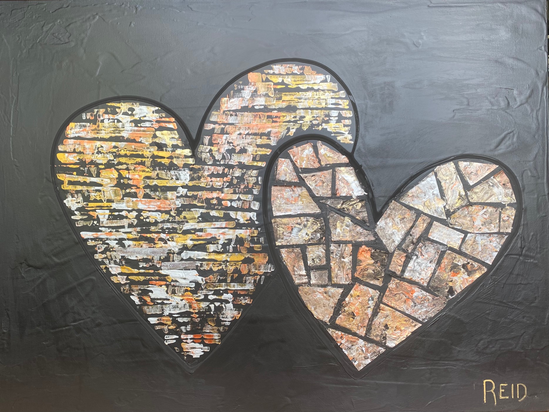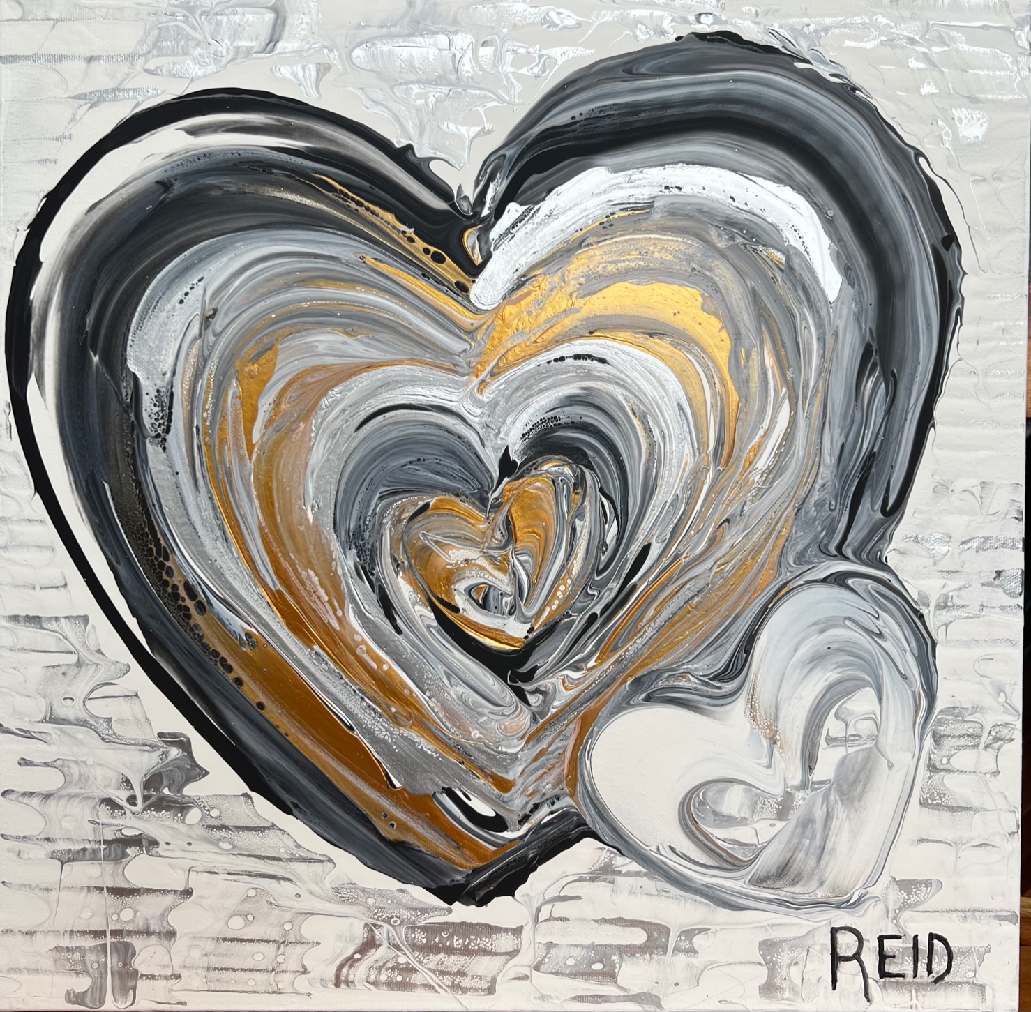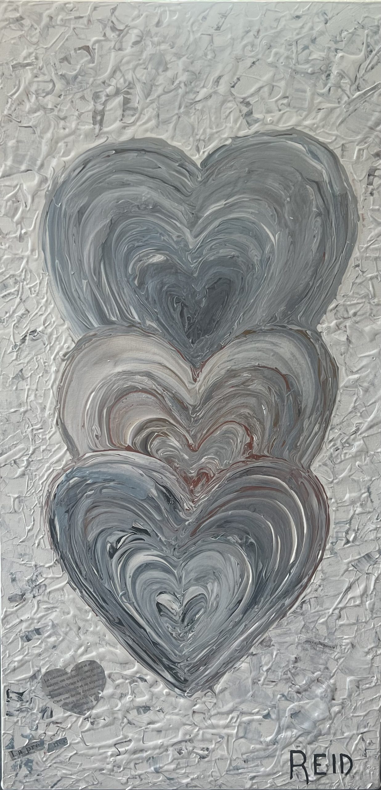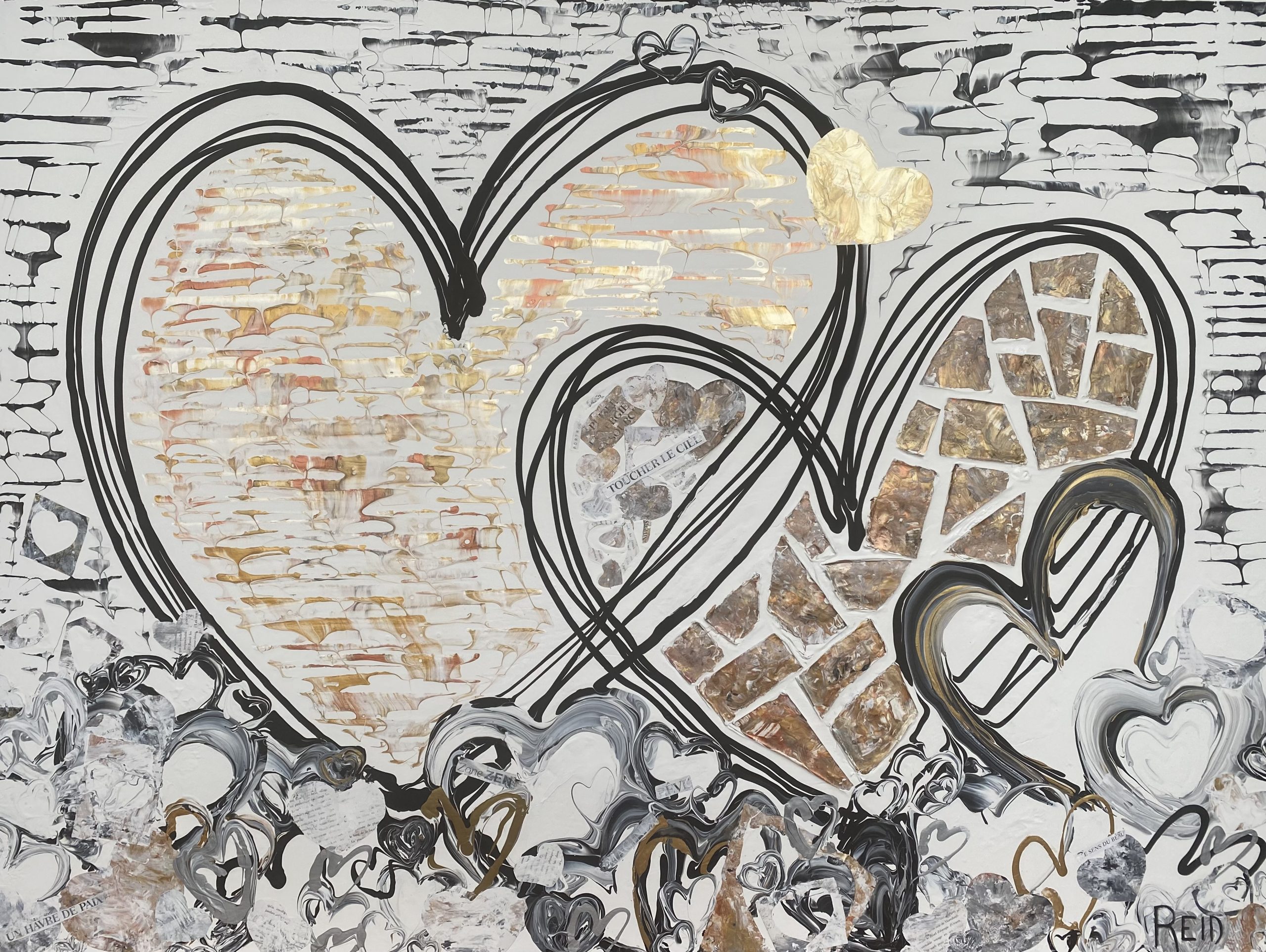 Collection Coeurs couleurs métalliques et monochromes L’essentiel c’est d’aimer L’essentiel n’est-il pas de simplement s’aimer? 40x60 - 3300$ La présence Enracinement, Connexion avec soi, Connexion aux autres - 15x30 - 1500$ Aimer l’amour Le plus grand bonheur c’est d’aimer. 24x24 - 1500$ Semer l’amour Semer l’amour. 16x16 - 500$ À la découverte 12x12 - 325$ Aimer malgré les différences 12x12 - 325$ Connexion 12 x12 - 325$ Présence 12x12 - 325$ Douceur et discrétion Dans la douceur et la discrétion. Savoir faire. Savoir être. Mettre de la lumière autour de soi. 36x36 - 2300$ A découvrir Dans la douceur et la discrétion. Savoir faire. Savoir être. Mettre de la lumière autour de soi. 36x36 - 2300$ Ce que ton cœur porte 30x40 - 2300$ Il suffit d’être 40x60 - 3300$ Aimer c’est être… Être dans ses imperfections, être dans son intégrité, être avec les autres, être en amour avec la vie. 24x48 - 2300$ Aimons nous toujours plus fort Avec nos ressemblances, avec nos différences, toujours plus fort. 18x36 - 1350$ Être ensemble… Tout devient magique lorsqu’on est ensemble. 30x15- 1000$ Nourrir le rêve Tout devient magique lorsqu’on est ensemble. 30x15 - 1000$ Précieux temps Cultiver l’intimité. Récolter le bonheur. 24x24 - 1500$ Être dans son cœur C’est dans le cœur qu’on trouve la paix. 30x15 - 1300$ Dévoiler ses couleurs Pour créer de vrais liens. 40x30 - 2300$ Dites le avec amour A tous les jours. 30x40 - 2300$ Explosion intérieure Seule l’explosion intérieure permet de briller. -Paulo Coelho. 16x16 - 900$ Aimer de l’intérieur Aimer de l’intérieur. Aimer pour vrai ! 40x60 - 3300$ Femme 12x12 - 450$ Récolter le bonheur Doucement, avec amour et passion. 24x24 - 1500$ Imagination Pour devenir complice de la beauté. Pour réparer et devenir créateur. 24x24 - 1500$ Créer avec amour Ce qui est fait avec amour transcende la temps et devient art . 20x20 - 1300$- Disponible à Un Fauteuil pour deux Voyage au cœur de soi L’âme est pur amour. Elle ne juge pas, ne se plaint pas, elle aime tout simplement. 30x40 - 2300$ La loi de l’attraction La loi de l’attraction Futures générations Pleins les yeux. 36x24 - 1980$ Toucher le ciel Aimer jusqu’à vouloir toucher le ciel!! 36x48 - 2700$ Rêver la suite du monde... Restez connecté au monde et surtout à votre cœur. 24x24 - 1500$ L'intemporelle L'intemporelle Avec coeur ... Créer avec le coeur. L’esprit tranquille. Avec simplicité et audace. Classique et raffinée. C’est une question de valeur. 24x24 - 1500$ Escapade de rêve Se laisser transporter. Passion et bien être. Atteindre le summum du bonheur. 24x24 - 1500$ Vision inspirée À travers tous les récits, toutes les histoires inscrites, je continue de croire qu’il est possible de trouver le chemin ensemble pour inspirer, pour rayonner et surtout pour aimer. 24x24 - 1500$ Ces femmes... Par leurs regards, leurs mots, leurs gestes. Elles bâtissent, elles tracent la route, elles embellissent le monde! 30x30 - 1980$ Modernité réinventée Je retourne à la source et je rêve éveillé d’un espace libre et paisible. Un espace où l’on peut créer, où l’on peut réinventer la modernité 40x60 - 3300$ - Disponible à Un Fauteuil pour Deux Prendre soin 24x20 - 1250$ Nouvelle vision Défier le temps et briller de mille feux. Avec Amour et passion. 36x48 - 2770$ Face a face Toute la vérité. En toute confiance. 48x24 - 2300$_ Disponible à Un Fauteuil pour Deux Nouvelle Ère Amis pour la vie. Famille aujourd’hui. Amour et paix. Le Monde en a besoin. 24x24 - 1500$ - Disponible a Un Fauteuil Pour Deux Raison du coeur Le cœur a ses raisons que la raison ignore. Il est temps de changer... et laisser les cœurs s’exprimer. 40x60 - 3300$ - Disponible a Un Fauteuil Pour Deux Privilège Mot de passe: coeur. Sur le chemin. Le bonheur d’offrir...24x36 - 1900$ Haute en couleur Savoir regarder la vie différemment .. Laissez briller l’amour 30x15 - 1400$ Mythes et realités Peu importe car tout le monde rêve d’être amoureux… Et ça part de soi....36x48 - 2700$ - Disponible à Un Fauteuil pour Deux Lecon de maître (Vendue)